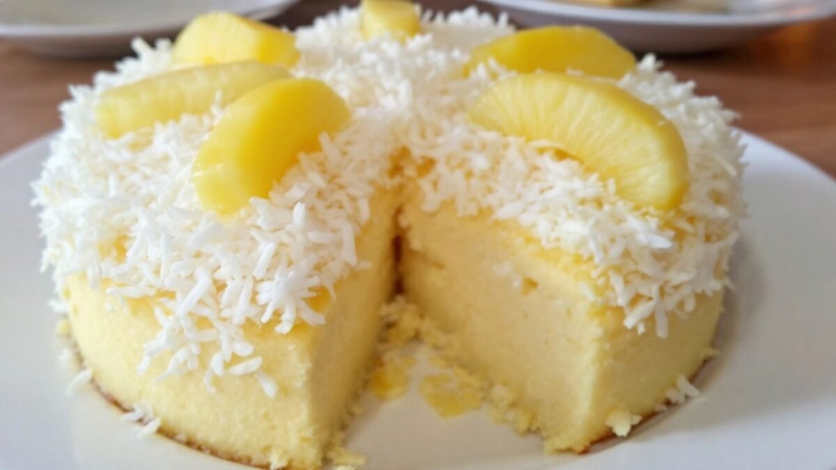 - O bolo é uma combinação refrescante de abacaxi e coco.